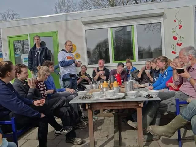 While it was still freezing at Clinton, the first days of spring weather had arrived in the Netherlands. For a couple years, the Dutch alumni enjoy that lovely spring weather together. Not only at the spring gathering to welcome the new campers, but also during the National Day of Community Service, called NL Doet, which can be translated to ‘the Netherlands Acts’. The idea behind this day is to come together as alumni and to apply what we learnt at Camp Rising Sun to our own country. A little bit of project time on a Saturday in March. Our youngest alumni organise this yearly event with support of a board member of the Dutch Alumni Association. This year the task was up to Merel van Helten and Koen Roskamp (CRS ’16). More than 15 alumni that attended camp somewhere between 1971 and 2016, including family and friends participated this year. We had an exciting day of building and digging.